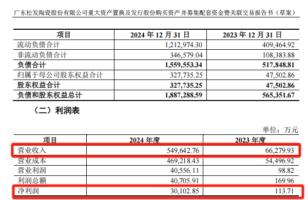 交易预案显示,2023年、2024年,恒力重工的营业收入分别为6.63亿元、54.96亿元;净利润分别为113.71万元、3.01亿元。