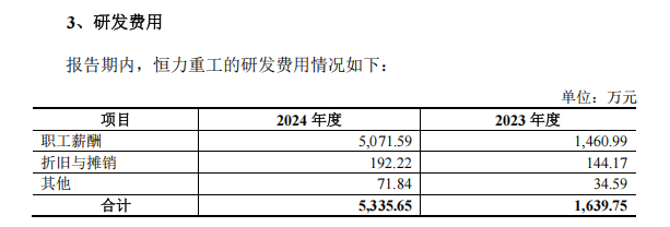 交易方案显示,2023年、2024年,恒力重工的研发费用分别为1639.75万元、5335.65万元,研发费用率分别为2.47%、0.97%。